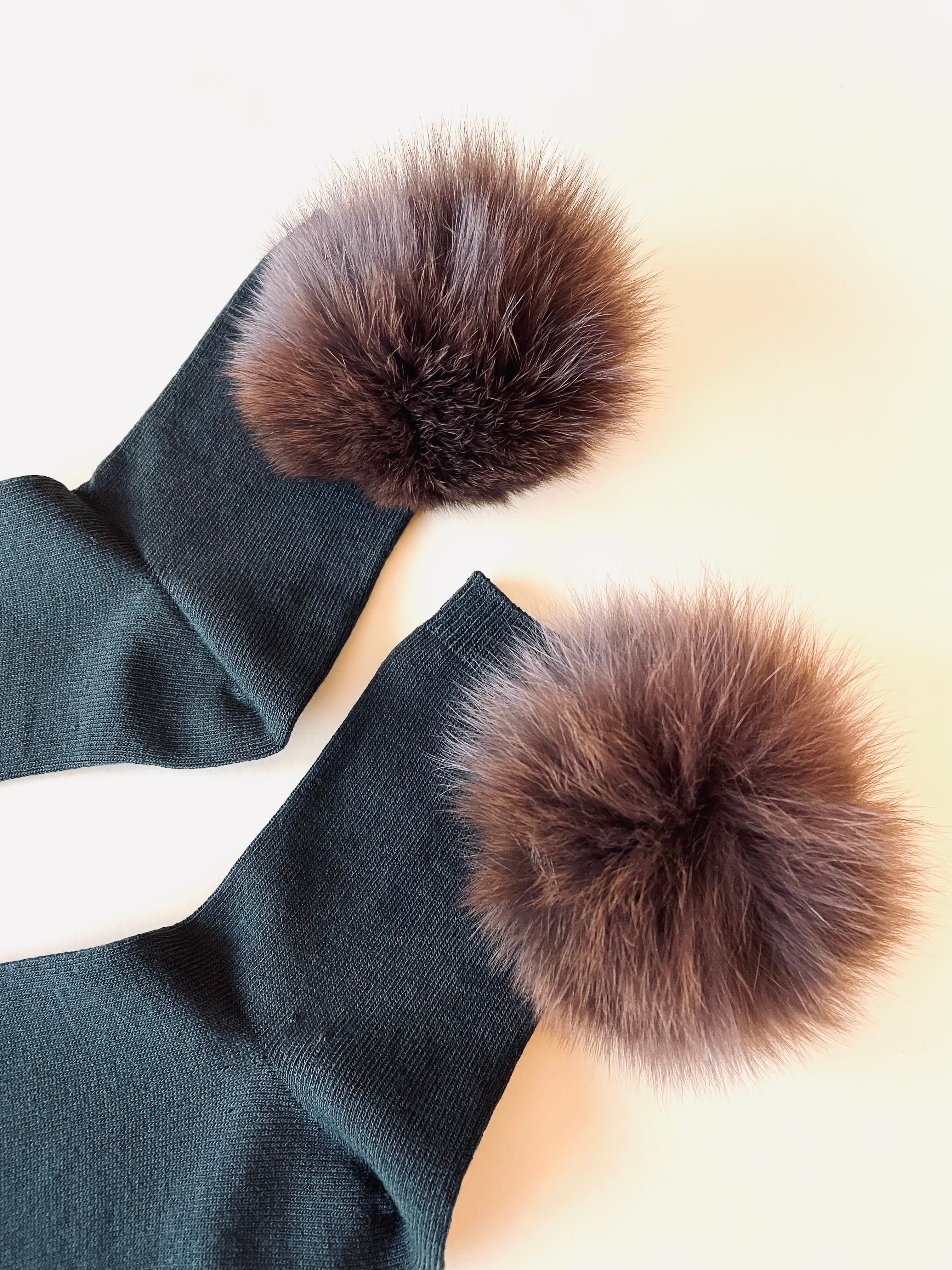 リアルファーの中でも特に高級感のあるフォックスファーをたっぷり使用してボリュームのあるファーボンボンになっています。