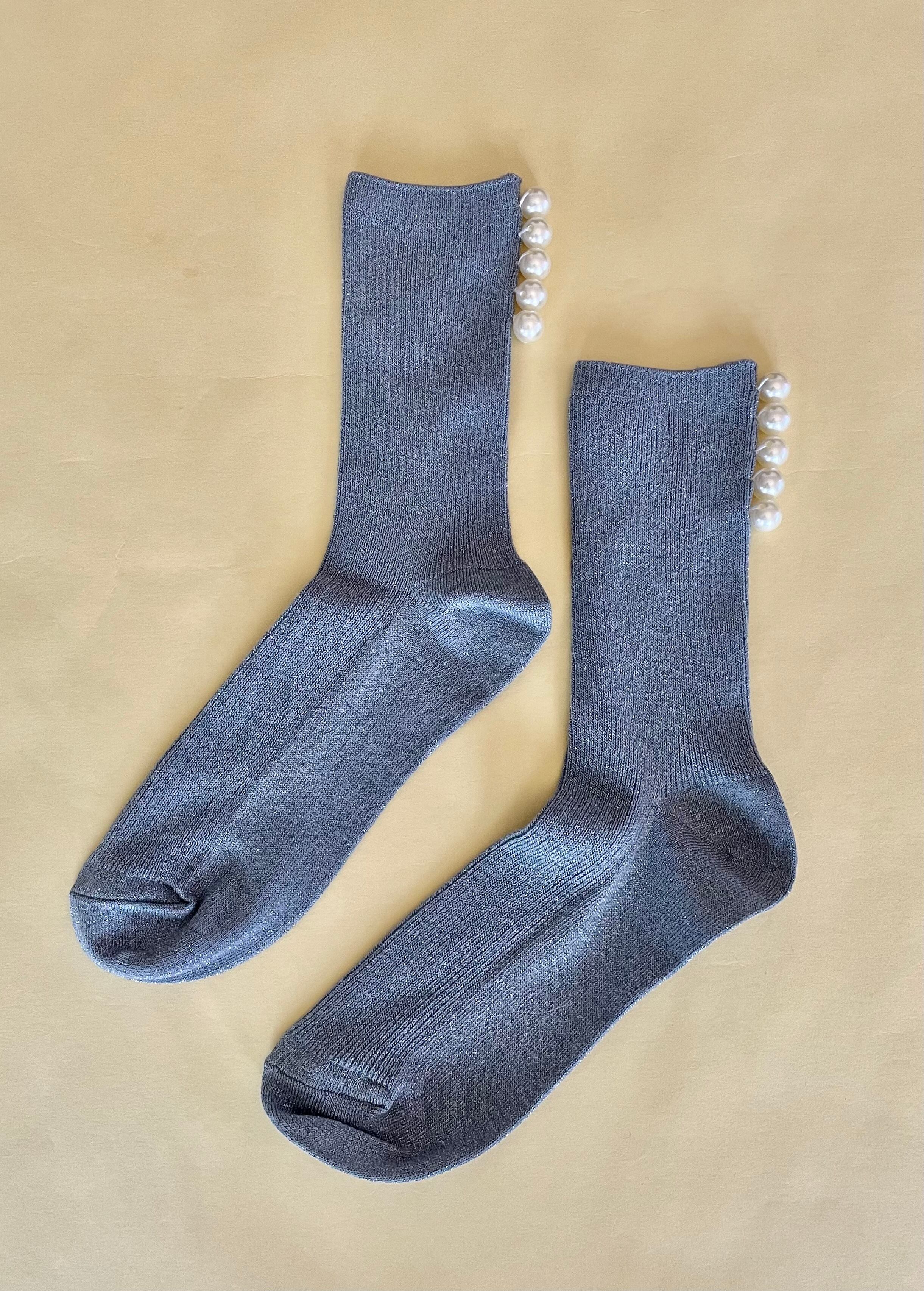 ライトブルーのラメソックスに大粒のパールをあしらいました