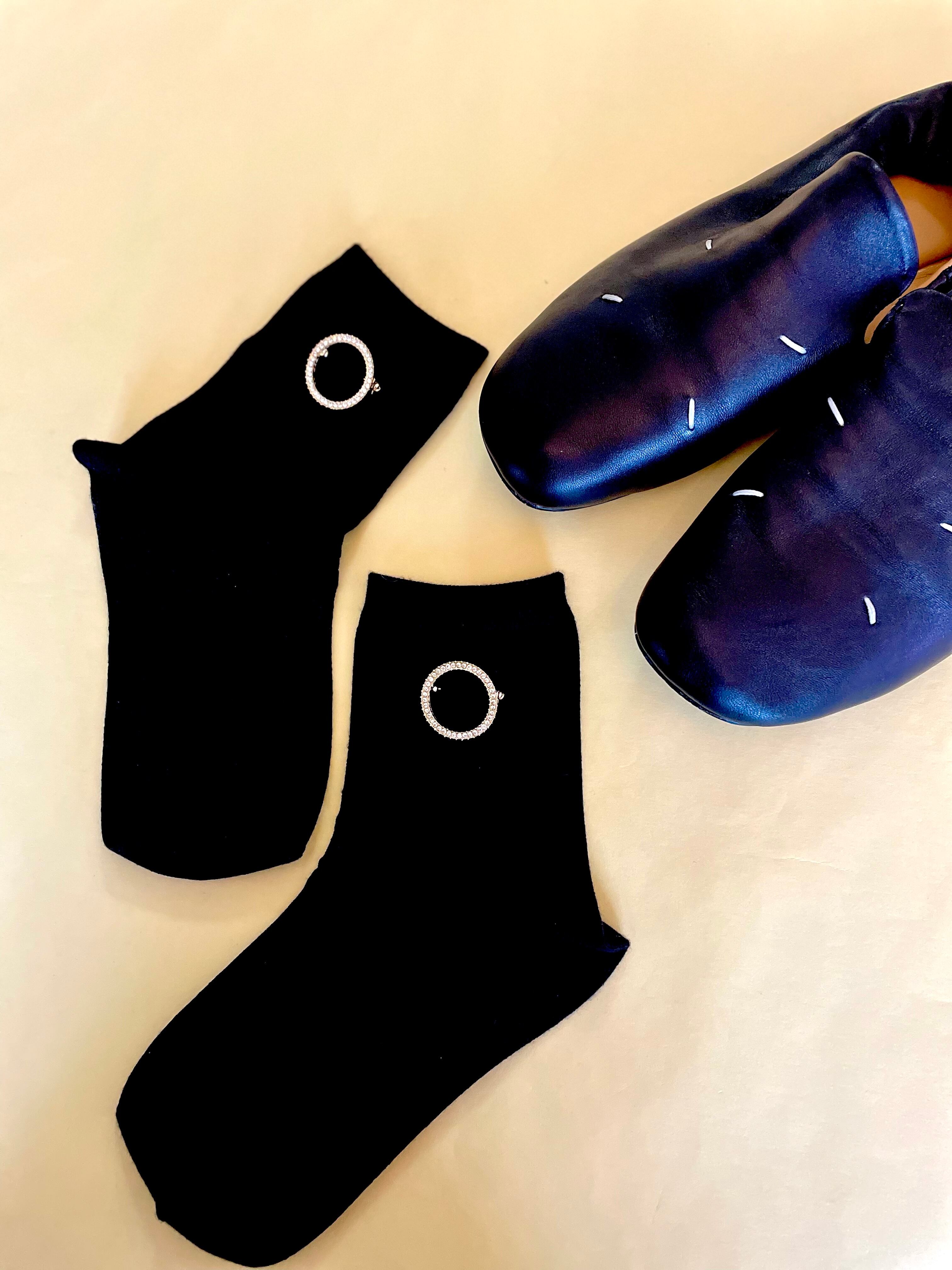 存在感のあるリッチなブローチが足元を華やかにしてくれます